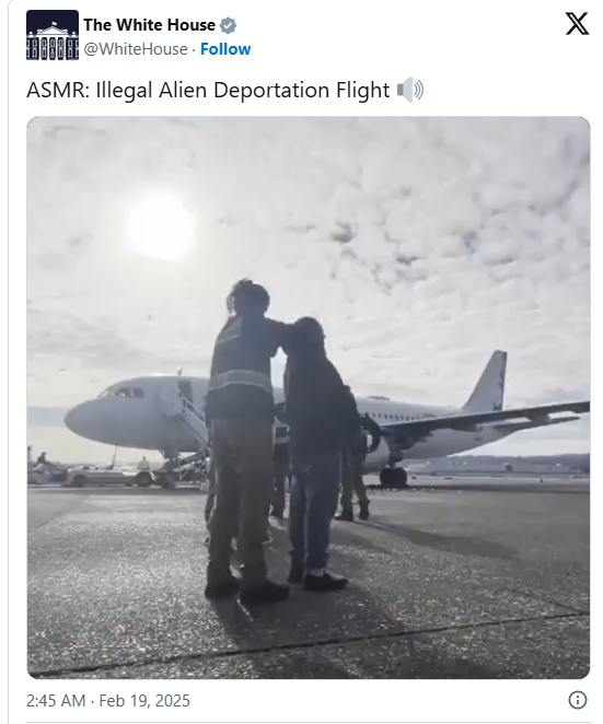 中新网2月19日电 据美国消费者新闻与商业频道(CNBC)报道,当地时间18日,美国白宫在社交媒体平台发布了一段视频,显示非法移民被锁链束缚,准备从西雅图登上遣返航班。